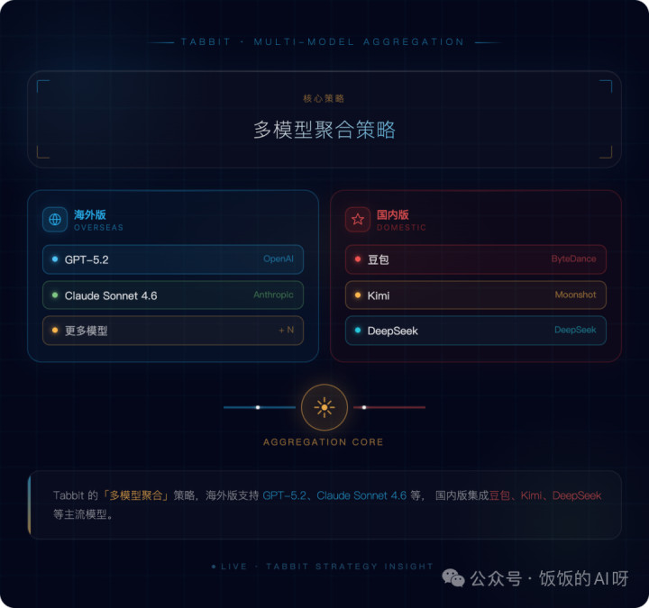 此外,Tabbit的“多模子团聚”策略亦然其灵敏之处。国外版撑持GPT-5.2、Claude-Sonnet-4.6等,国内版集成豆包、Kimi、DeepSeek等主流模子。用户可字据任务目田切换,已毕模子级别的A/B测试,这在单一模子的AI助手中难以已毕。