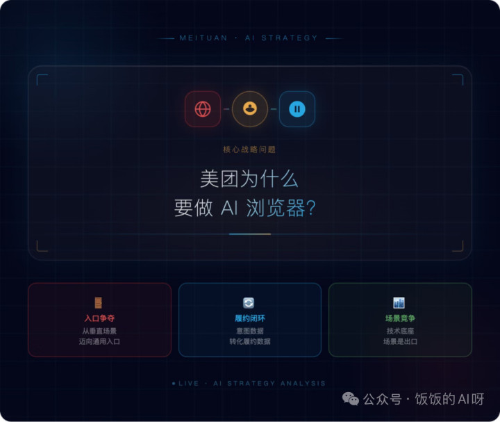 好意思团作念AI浏览器,绝非一时兴起或盲目跟风。这是一场经过精密筹画的计策布局: