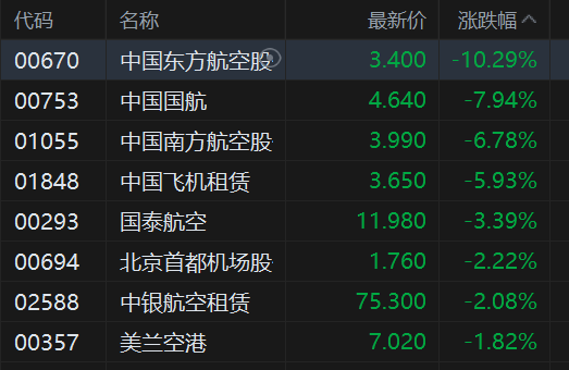金博宝app手机版 航空股链接跌势,中国东方航空大跌超10%,月内累跌近40%