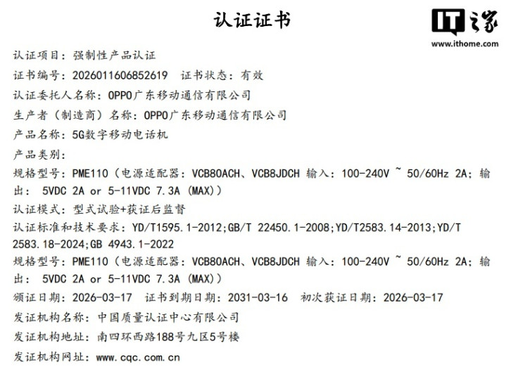 据IT之家此前报谈,一款型号为PME110的OPPO机要新机还是通过国度3C认证,@数码闲话站等爆料东谈主士以为这是OPPOFindX9sPro手机,标配80W充电器。