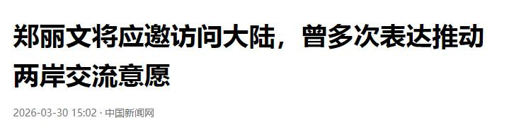 中国新闻网:2026-03-30:郑丽文将应邀看望大陆,曾屡次抒发激动两岸交流意愿