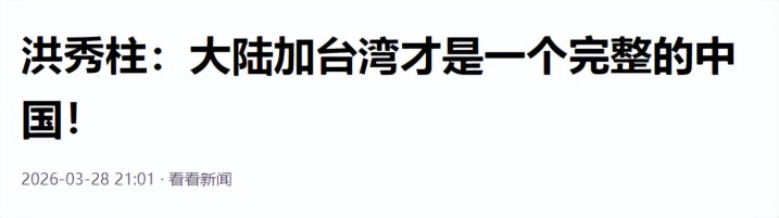 望望新闻:2026-03-28:洪秀柱:大陆加台湾才是一个竣工的中国!