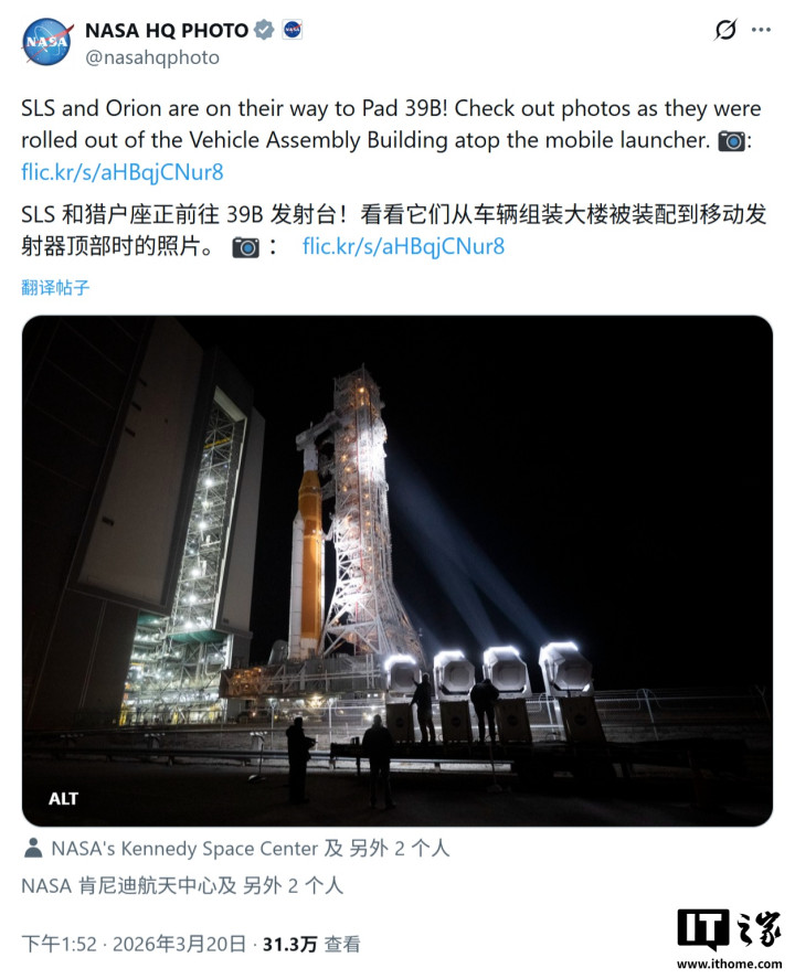 IT之家3月21日讯息,好意思国宇航局昨日(3月20日)发布博文,晓喻其“天际辐射系统”(SLS)火箭及“猎户座”飞船已重返佛罗里达州39B辐射台,准备现实50多年来的初度载东说念主绕月任务。